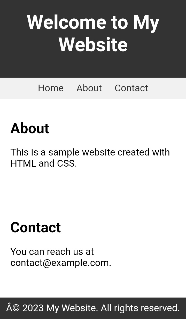 Furthermore, "My Website" includes a cohesive color scheme that creates a sense of harmony throughout the pages. The header and footer feature a sophisticated dark tone, while the navigation and content sections employ a lighter background to enhance readability and draw attention to your text and images.